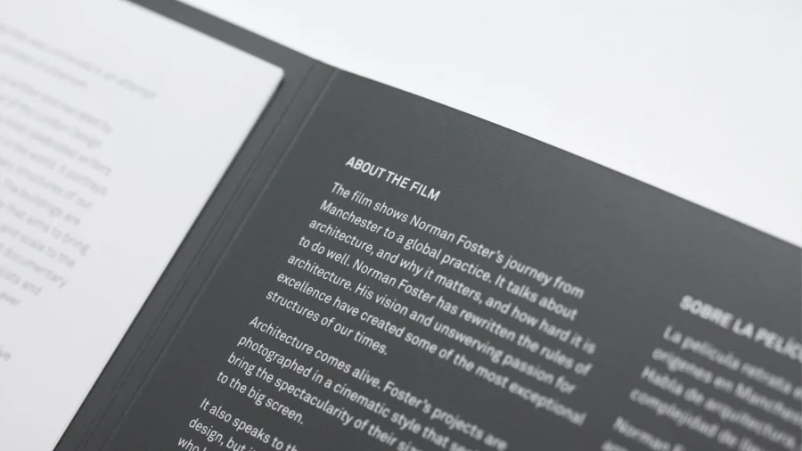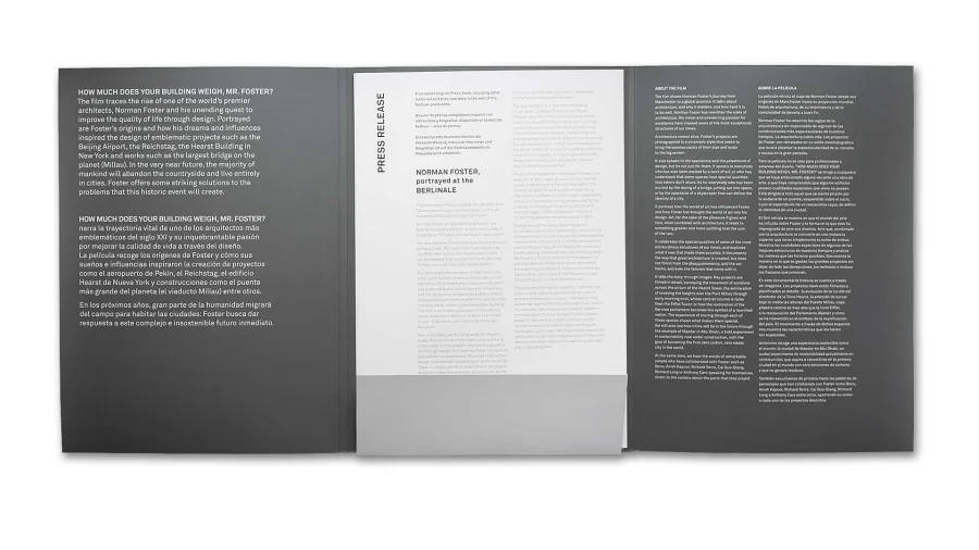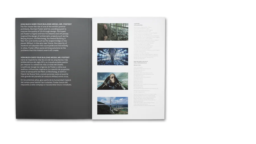 Der Film über den Aufstieg von einem der weltweit erfolgreichsten Architekten Norman Foster und seiner Suche nach Wegen, die Lebensqualität durch Design zu verbessern, ist von Elena Ochoas Produktionsfirma Art Commissioners produziert wurden. Der Film zeigt Fosters Anfänge und wie dabei seine Träume und frühen Einflüsse Inspirationsquelle für das Design seiner beeindruckende Gebäude waren. Thomas Manss & Company arbeitete zusammen mit Art Commissioners an dem Vor- und Abspann des Films und gestaltete das gesamte Begleitmaterial für die Premiere auf der Berlinale 2010. Das Begleitmaterial besteht aus Filmposter, Pressemappe mit DVD und die Art Commissioners Website, die ebenfalls auf den Film verweist.