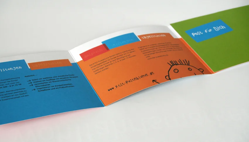 Faltblatt mit abtrennbarer Postkarte.
