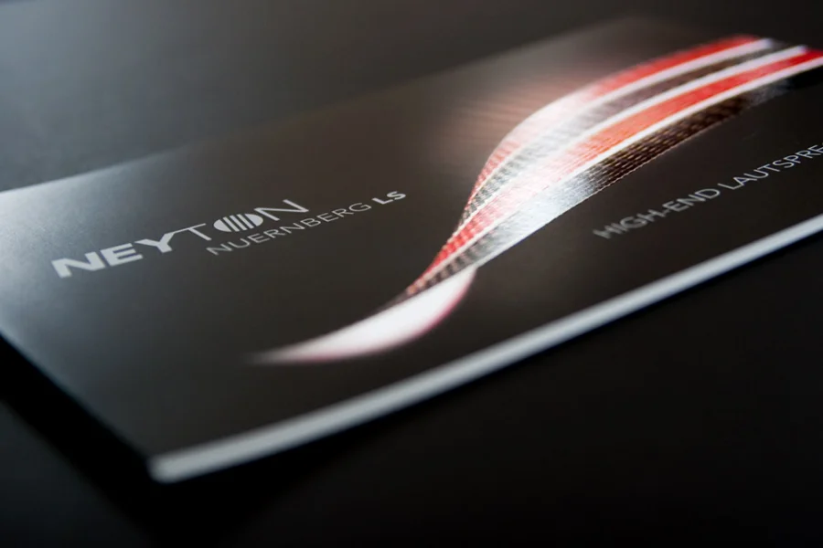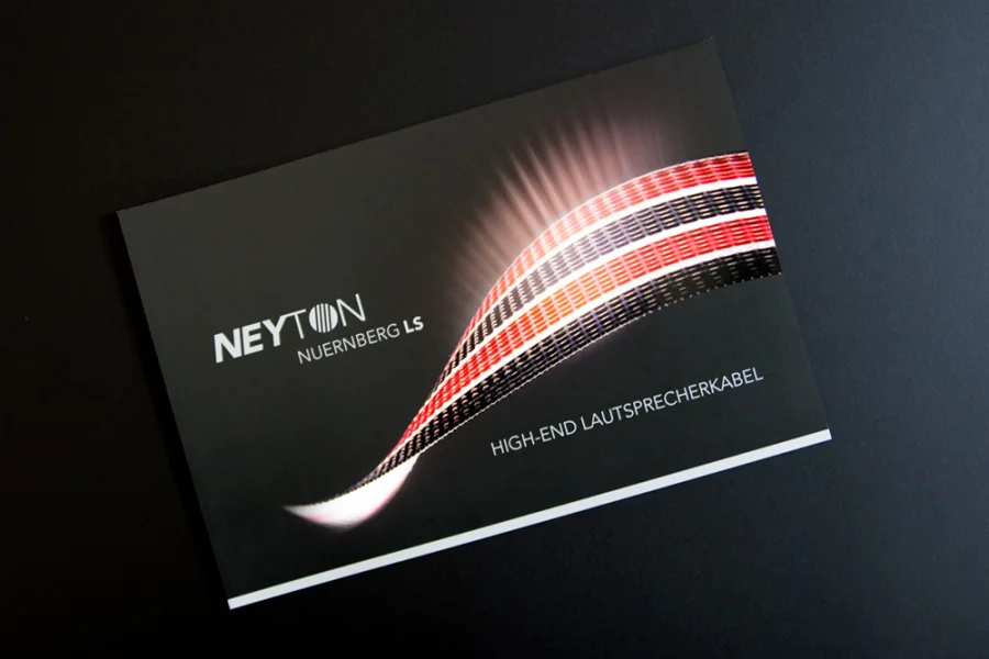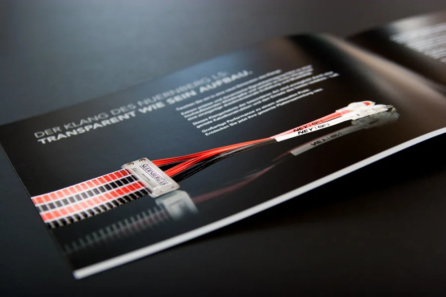 Konzeption, Photographie und graphische Gestaltung eines Produktfolders des High-End Audiokabels “Nuernberg LS” der Marke NEYTON®. Druckveredelung mit partiellem UV-Lack.