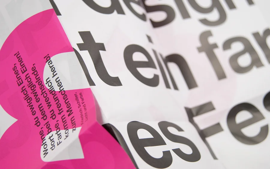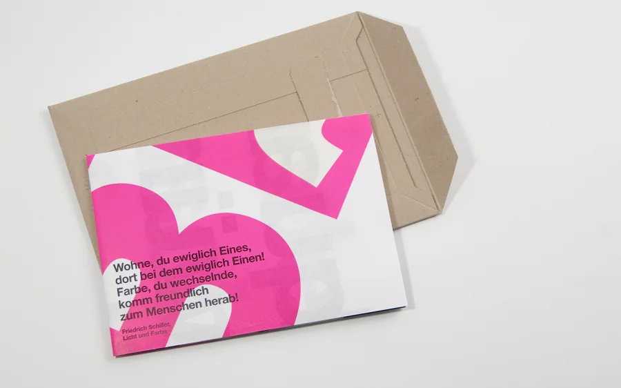 2010 freuten wir uns besonders, ein selbst gestaltetes Buch verschenken zu können: das Buch “Signaturen der Nacht”, welches in 2009 u. a. beim Verlag avedition erschienen war. Dazu passend gab es als Karte ein Faltplakat mit dem Thema “Licht und Farbe”. Besonderheit: Der Begriff “Licht” wurde in einer selbstreflektierenden Farbe gedruckt und leuchtet im Dunkeln.