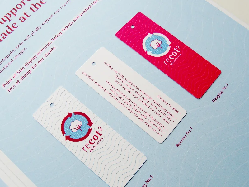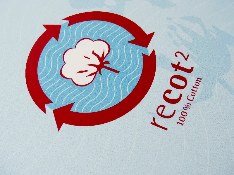 Entwicklung und Gestaltung eines Markenzeichens für ein Recycling-Garn. Gestaltung einer 6-seitigen BtoB Informationsbroschüre, auf Englisch und Deutsch, zur Präsentation der Marke recot².