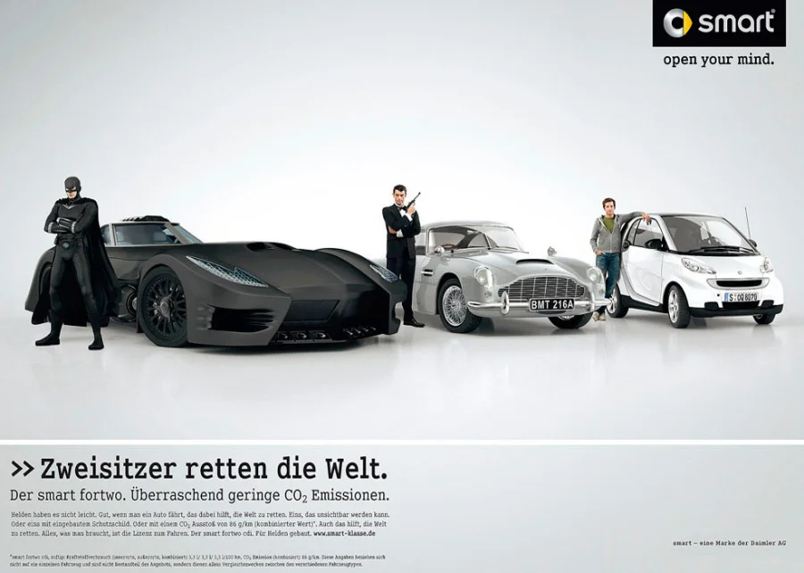 Die Arbeit der Superhelden wurde bis auf den Darsteller des James Bond und den Fahrer des smart komplett in 3D erstellt.