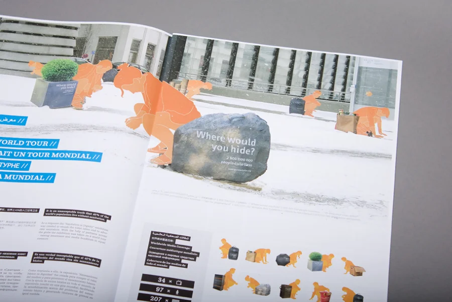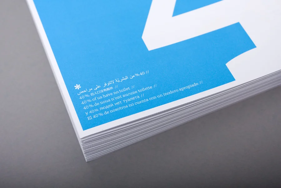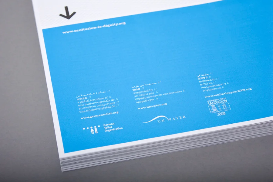 Zum Abschluss des von der UN im Jahr 2008 ausgerufenen „International Year of Sanitation“ gestalteten wir darüber hinaus eine Dokumentation zur Kampagne. In dieser werden neben themenbezogenen Fakten auch Impressionen aus den bisherigen Aktionen sowie die Reaktionen aus der Öffentlichkeit zusammengefasst. Wir entwarfen eine großformatige Zeitung, die dem Betrachter auf 16 Seiten und in sechs Sprachen einen übersichtlichen Einblick in das Thema bietet.