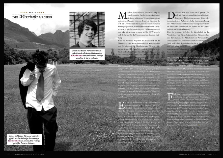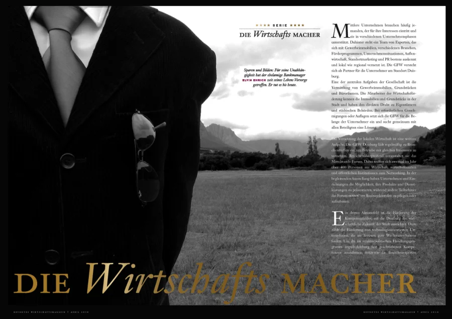 Präsentation eines neuen Editorial Designs für ein lokales Wirtschaftsmagazin.