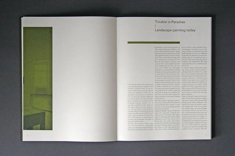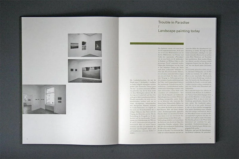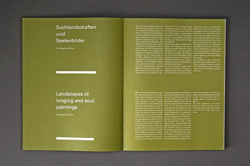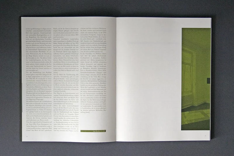 Kataloggestaltung zur Gruppenausstellung “Landschaft” in der Galerie Hübner + Hübner Frankfurt am Main. Der Katalog wurde im Verlag für moderne Kunst veröffentlicht.