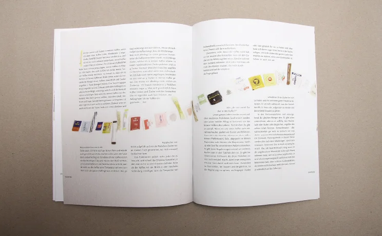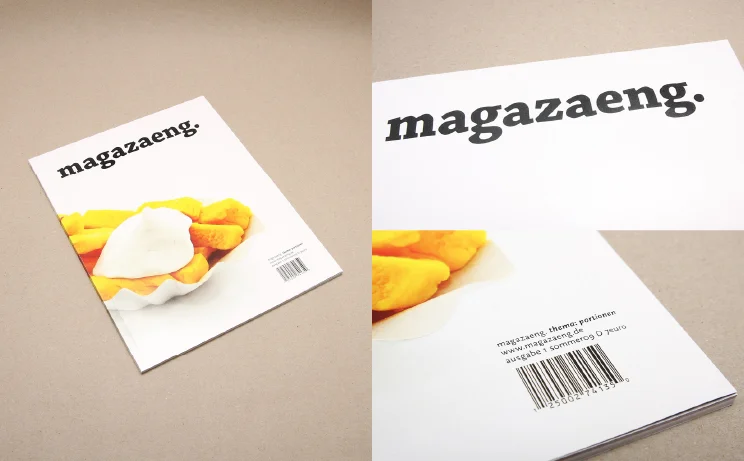 Das magazaeng. Sollte vierteljaehrig erscheinen, mit wechselndem Thema zu augenscheinlich uninteressanten Aspekten des taeglichen Lebens, designtechnisch und redaktionell ansprechend aufbereitet. Die erste Ausgabe behandelt das Thema PORTIONEN; Inhalt der Ausgabe unter anderem: Gerichte aus Knetmasse, Zucker, Medikamentenportionen und der Frage, wieviel eigentlich genug ist.