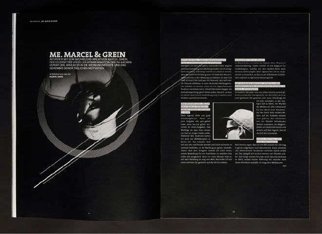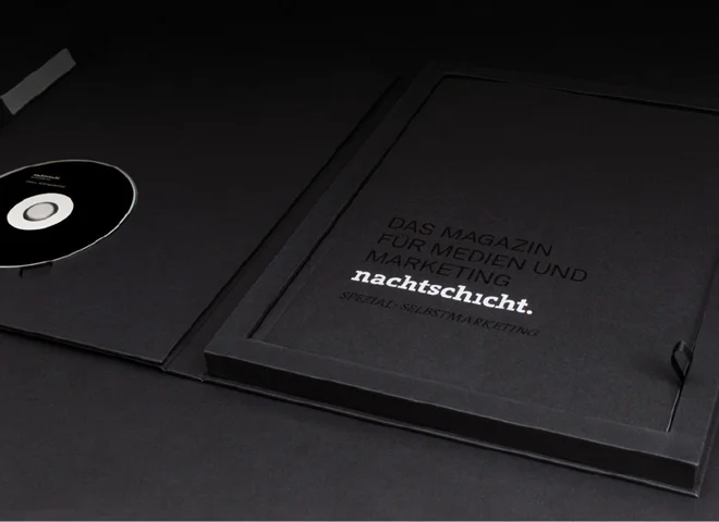 Ein Magazin für Medien und Marketing. Schwerpunkt der ersten Ausgabe: Selbstmarketing. Dies jedenfalls wird dem Betrachter zunächst vermittelt, bis er feststellt, dass es sich bei dem Produkt um reine Selbst-PR handelt. Das geschickt verpackte Portfolio des ehemaligen Studenten Marcel Grein zielt auf zukünftige Arbeitgeber. Die Arbeit besticht durch die aufwändige Produktion, die liebevoll geschriebenen Texte zu seinen Arbeiten und über ihn als Kreativen. Mittels viralem Marketing wurde auf die begleitende Website des »neuen« Magazins www.nachtschicht-online.com aufmerksam gemacht, auf welcher der User die Entdeckung machte, dass das Magazin unverkäuflich sei, aber die Möglichkeit bestehe, bei einem Vorstellungsgespräch einen Einblick zu erlangen.