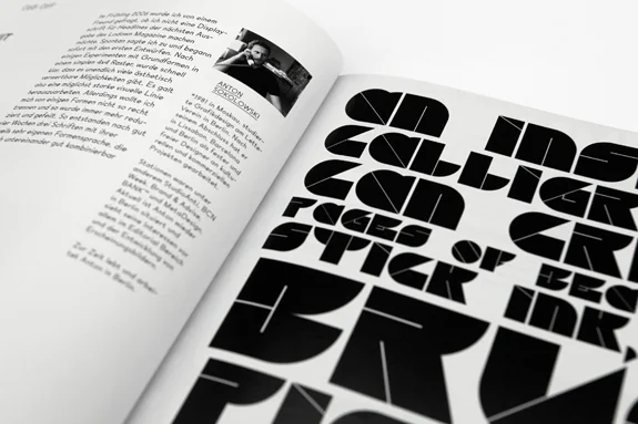 “Geometrics. Porn.” beschäftigt sich mit Schriften und Designs, die basisgeometrische Formen wie Quadrat, Kreis und Dreieck als Grundlage haben. In Portraits, Type Essays, Fotostrecken, der Rubrik Fonts & Fontlabels, Fontnames Illustrated und Typolyrics stellt Slanted #7 zeitgenössische Schriften und Designer vor. Mit Beiträgen von Emil Kozak, Non-Format, Dan Reynolds, Florian Walzel, Ian Moore, Taro Hirano, Dirk Altenkirch und vielen anderen. Desweiteren bietet die Ausgabe Interviews mit Ed Benguiat, John Collins und Jan Middendorp zu allgemeinen Themen, Geo-Arbeiten (u.a. von Hort, Benoit Lemoine, Labour, Mind Design), die Rubrik Studienplatz mit (Abschluss-)Arbeiten von Studierenden sowie Neuigkeiten von www.slanted.de. Zum ersten Mal (in einer Serie von 4 Ausgaben) ist das Magazincover von einem Poster umhüllt, welches das Wort “Porn” propagiert. Nach 4 Ausgaben wird so eine Serie entstanden sein, die einen 4-Wort-Satz bildet.