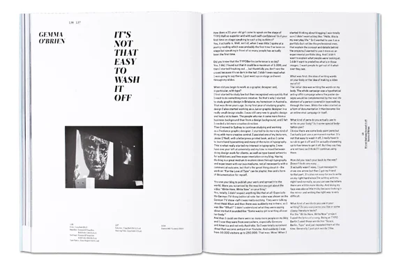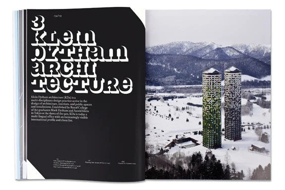 Mehr denn je überschreitet Slanted auch geografische Grenzen und präsentiert Arbeiten von Edhv (Eindhoven), Klein Dytham architecture (Tokyo), Pixelgarten (Frankfurt), Maxime Buechi (Lausanne), Ina Saltz (New York), Erwin Bauer (Wien), Sangho Park (Stuttgart) und vielen anderen. Die Rubriken “Fontlabels, Fonts & Families”, “Fontnames Illustrated” und “Typolyrics” stellen zeitgenössische Schriften und Designer aus aller Welt vor. Zu lesen gibt es Interviews mit Sabrina Tibourtine, Christoph Dunst, Sipho Mabona, Gemma O’Brien und Altmeister David Carson.