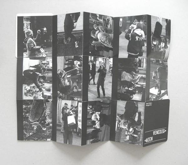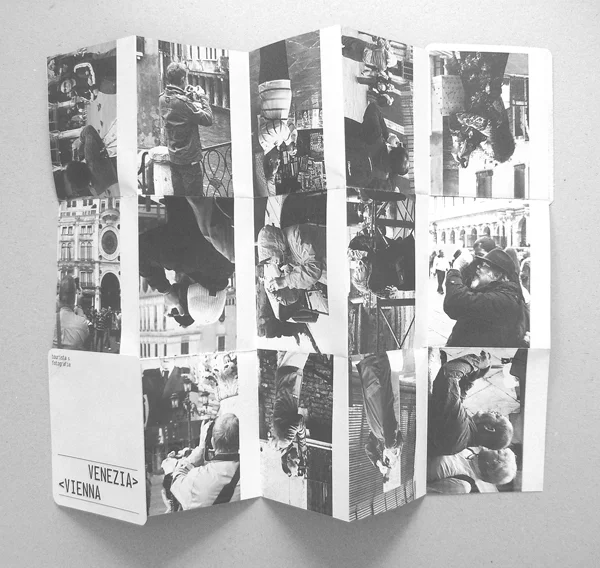 In Januray 2009 my class took a trip to Venice to explore the cultural differences between Vienna and Venice. I took a closer look at tourists and their behaviour. I created a »photo-book« with people taking pictures of attractions. I put all the photos together and created a photo-book in the shape of a city map. In order to see the pictures properly you have to turn the map around – just like a city map.