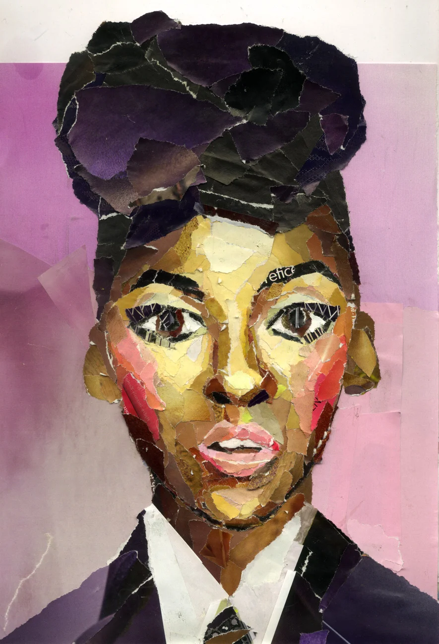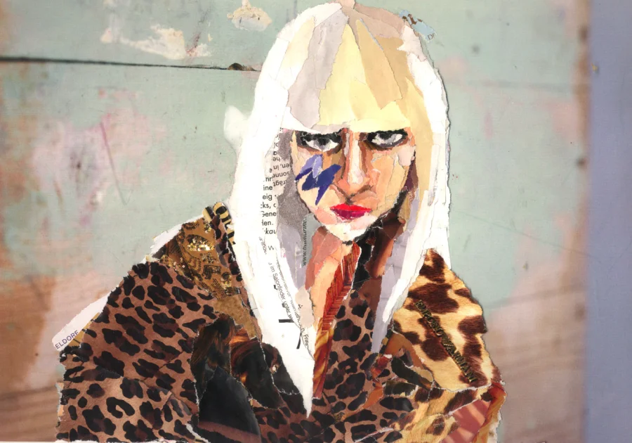 my illustrations are collages- all i need is old newspapers, magazines and lots of glue. i don´t even need scissors- i rip out bits of the magazines… i like this technique. sometimes a tiny little bit of paper is the inspiration for a complete image. chance is playing kind of a role, too. i can never say beforehand, how the result is going to look like.