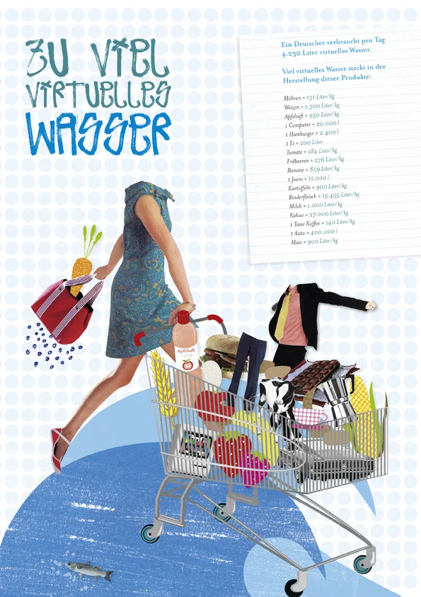 herzblut ist in “Think Green! Design To Save The World” mit der Arbeit “Zu viel virtuelles Wasser” vertreten. Der Erlös des Kalenders kommt verschiedenen Umwelt- und Klimaprojekten zu Gute.