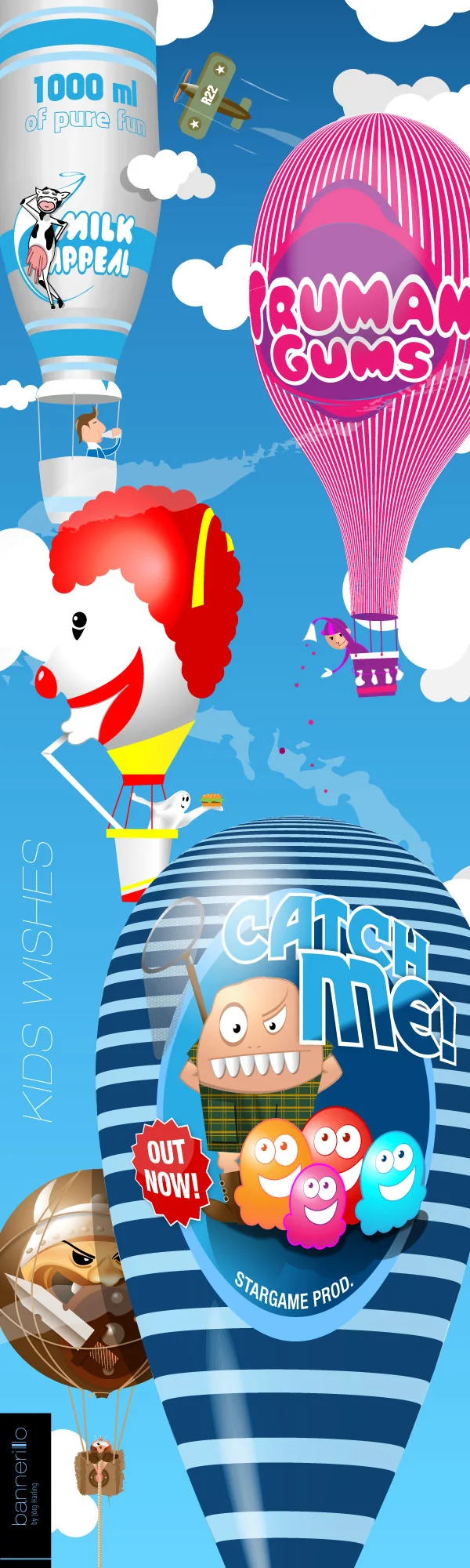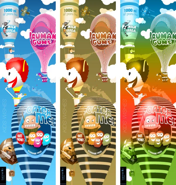 Erster fertiger Entwurf einer Illustrations-Serie im Banner-Hochformat. Verwendung im Innen- & Außenbereich. 3 Farbvarianten: realworld / oldfashioned / rainbow.