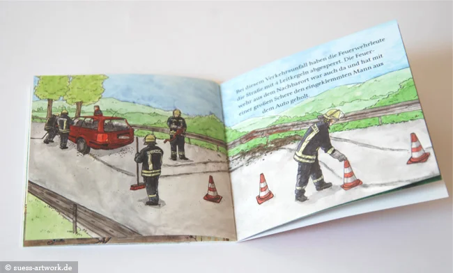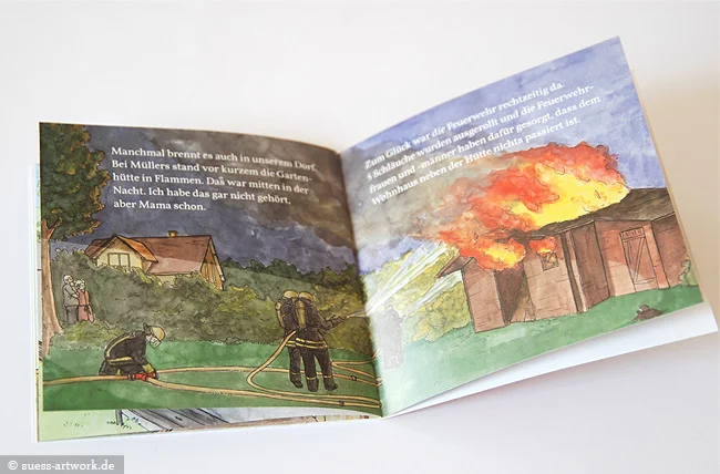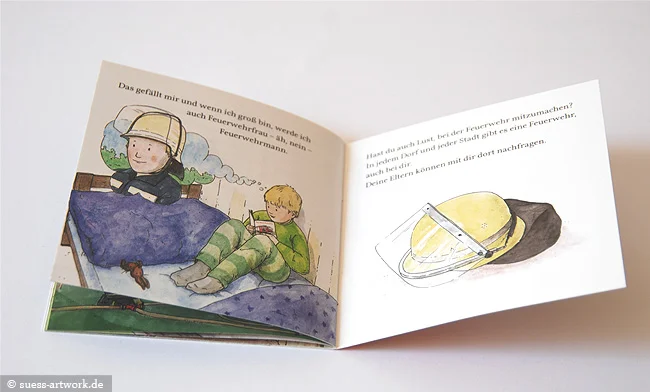 Dieses Kinderbuch entstand 2010 für den Landesfeuerwehrverband Hessen. Die tolle Geschichte dazu stammt von der aktiven Feuerwehrfrau Heike Münker, ich durfte die Illustrationen und das Layout beisteuern. Das Büchlein wird mit großem Interesse zur Brandschutzerziehung in Kindertagesstätten und Grundschulen eingesetzt. Außerdem dient das Buch dazu, die fachliche Seite der Brandschutzerziehung mit der Emanzipation – Frauen in einem Männerjob – zu verbinden.