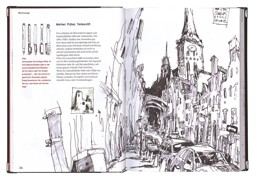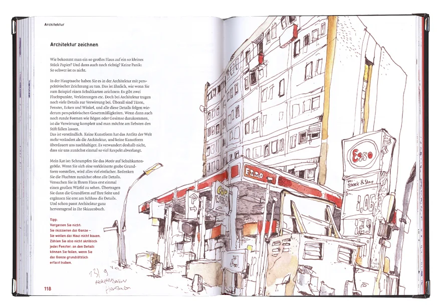 Lehrbuch über das Zeichnen und Skizzieren in Skizzenbüchern