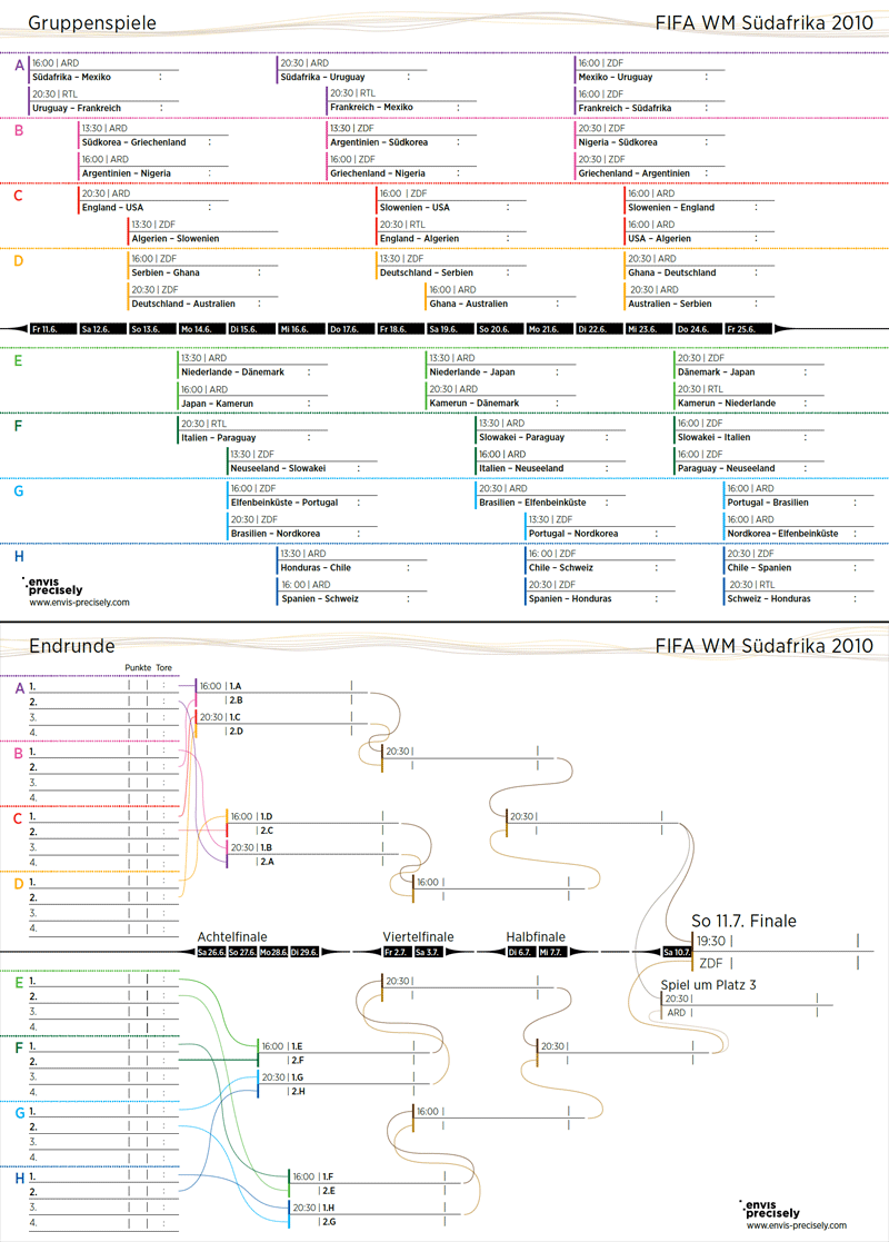 Im Internet findet man eine Vielzahl an Spielplänen für die kommene Fußball Weltmeisterschaft. Allerdings ist kaum einer davon gleichzeitig simpel, handlich und noch dazu gut aussehend. Deshalb haben wir beschlossen, einen Spielplan anzubieten, den jedermann herunterladen und auf nur zwei A4-Seiten ausdrucken kann. Er ist in drei Sprachen erhältlich, auf das nötigste reduziert und gibt dir trotzdem genug Platz um Ergebnisse oder Paarungen in der Endrunde einzutragen. Mit der Zeitleise direkt neben den Spielen, kannst du immer genau verfolgen, wann deine Mannschaft spielt und auf welchem Kanal du live mitfiebern kannst. Und das beste: Der Spielplan ist kostenlos!