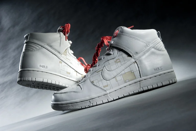 „Von der Wand in den Raum in den Himmel“ war das Motto der begleitenden Ausstellung. Die von Nike gestellten Sneaker wurden mit einem eigens von Heiko gestaltetem Motiv belasert. Wir unterstützen mit dem Erlös die Nike – RED laces Kampagne.