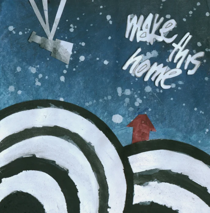 Ich habe dieses Albumcover gestaltet und dabei eine Collage aus Papier und Farbe verwendet, um es dann in Photoshop sauberer und prägnanter zu machen. Ausgangspunkt der Arbeit war der Titel ‘Make This Home’, der mir schon seit Jahren im Kopf herumgeschwirrt war. Ich finde die Idee interessant, dass das Konzept von Zuhause sich nicht ändert, ob man nun den Gedanken an Zuhause und damit das Zuhause selbst mit sich trägt oder sich dort hin sehnt.