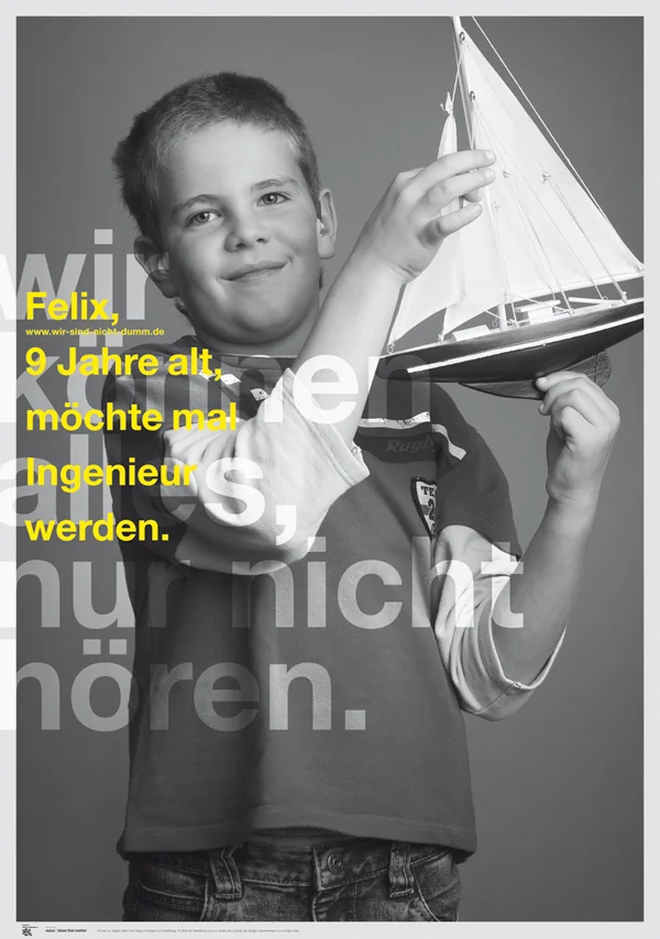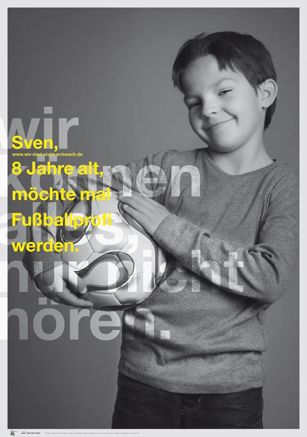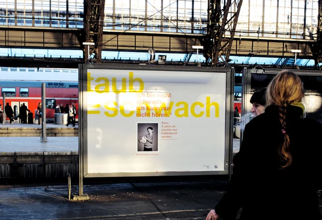 „Wir können alles, nur nicht hören“, ist der Name einer deutschlandweiten Kampagne zum Thema Gehörlosigkeit. Leitmedium waren Großflächenplakate (18/1), die von Ende November bis Ende Dezember 2009 an Bahnhöfen fünf deutscher Großstädte (Augsburg, Berlin, Hamburg, Köln, München und Stuttgart) zu sehen waren. Ziel der Kampagne war es mit provokativen und plakativ gestalteten Aussagen verbreitete Vorurteile gegenüber Gehörlosen aufzugreifen, Aufmerksamkeit zu erregen und eine öffentliche Debatte anzustoßen. Jedes der verwendeten Vorurteile spricht einen Themenkomplex an. Taub = dumm bezieht sich auf mangelnde Bildungschancen gehörloser Menschen, taub = stumm auf das Thema Sprache und Kommunikationsprobleme und taub = schwach auf die Probleme und Hindernisse mit denen gehörlose Menschen im Alltag konfrontiert sind. Die Plakatkampagne wurde zusätzlich durch andere begleitende Medien (Faltblätter, Postkarten, Spielkarten und Webseite) unterstützt.