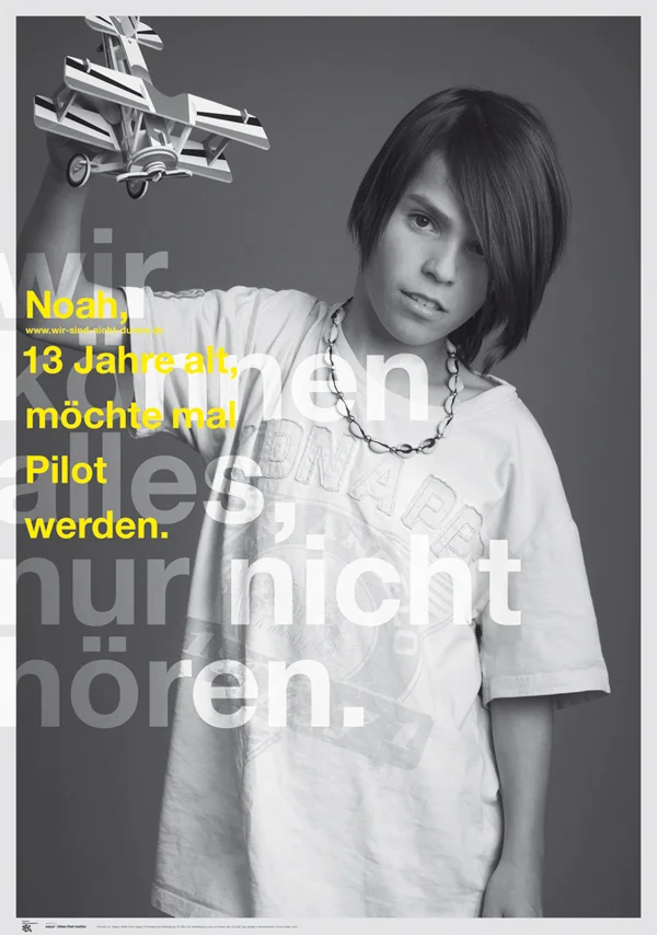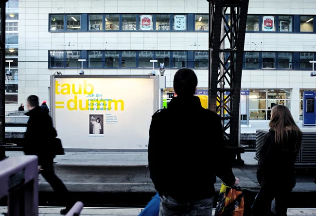 Konzipiert und gestaltet wurde die Kampagne von den Designern Nadja Riedel von [d] ligo design + development und Kurt Steinebrunner von S1 Büro für Gestaltung aus Augsburg in Zusammenarbeit mit Nina Tremmel (Text), Kerstin Mackevicius (staatlich anerkannte Gebärdensprachdozentin) und dem Netzwerk der Gehörlosen-Stadtverbände. Die Kampagne wurde als eine der Siegerkampagnen des europaweiten Wettbewerbs „Ideas that Matter“ realisiert und mittlerweile zusätzlich mit dem „Printers of the Year / Blue Green Award“ von Sappi ausgezeichnet.