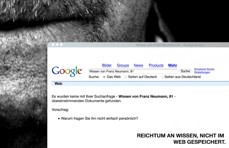 Die Plakate sollen darauf aufmerksam machen, das alte Menschen wertvolle Speicher sind, die es verdient haben Beachtung geschenkt zu bekommen. Ihr Wissen ist zu wichtig, zu einzigartig und zu spannend, als das wir es uns leisten könnten sie zu ignorieren.