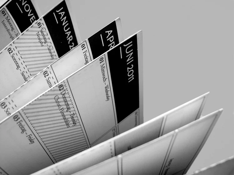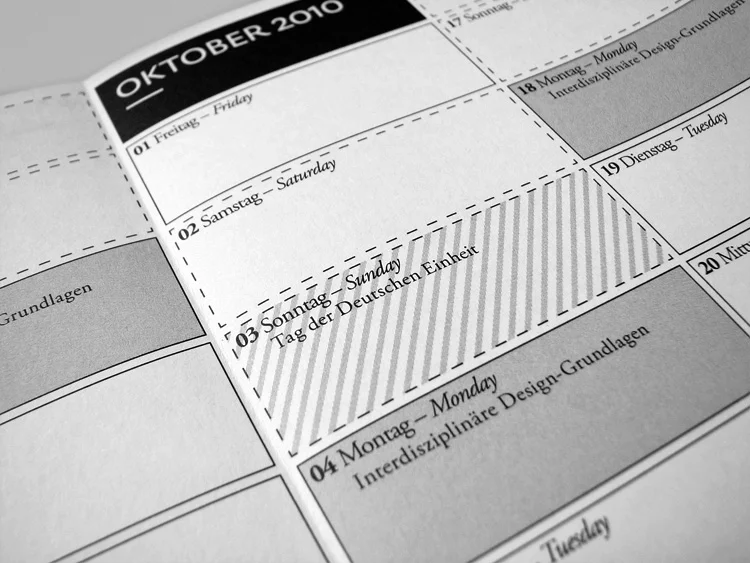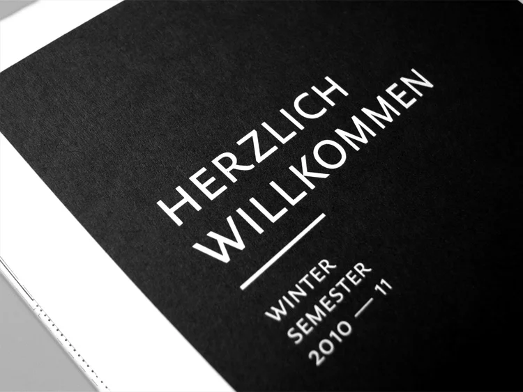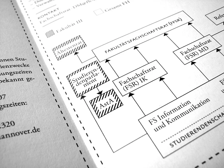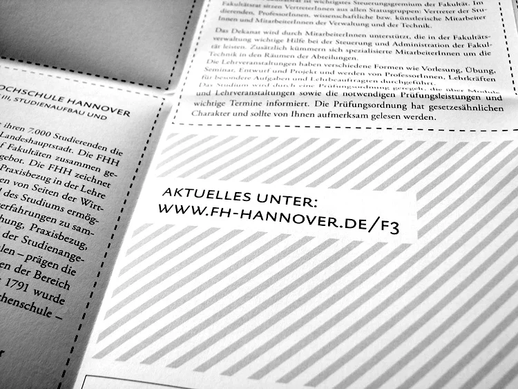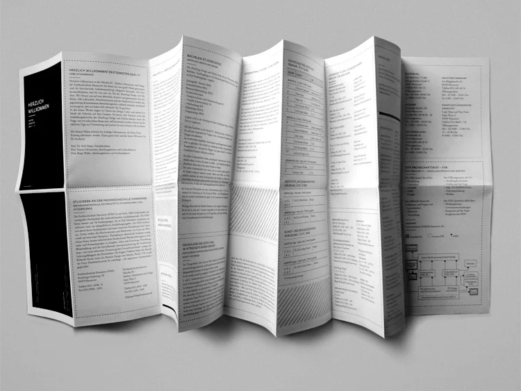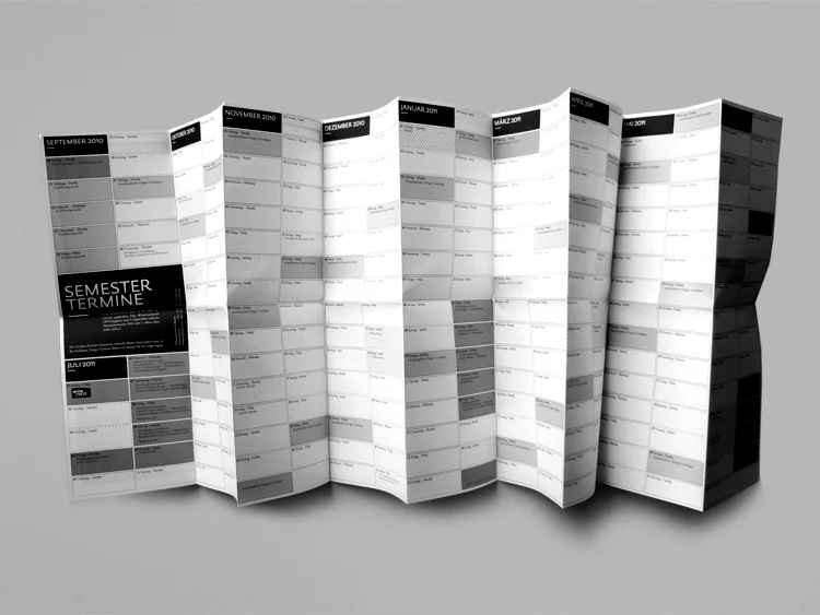 Poster zu einem Flyer zusammengefaltet. Auf der Vorderseite finden sich alle Informationen für einen guten Start ins Studium. Auf der Rückseite ist ein Wandkalender, der dabei helfen soll organisiert durch die ersten beiden Semester zu kommen.