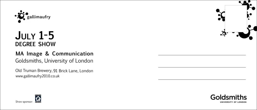 “Gallimaufry” war eine Degree Show des MA Image and Communication von Goldsmiths University of London im Juli 2010. Der Studiengang bestand aus 20 Studenten, aus der ganzen Welt, so entstand auch der Name der Ausstellung, was ein Mischmasch, Sammlung diverser Dinge bedeutet, was auf die unterschiedlichen Bereiche der Studenten wie Design, Film, Schauspielerei, Fotografie, Animation usw. hinweist. Jeder brachte sein Wissen und seine Kenntnisse, beeinflusst durch die jeweiligen Kultur mit ein und beeinflusste somit den gesamten Prozess des Studiengangs.