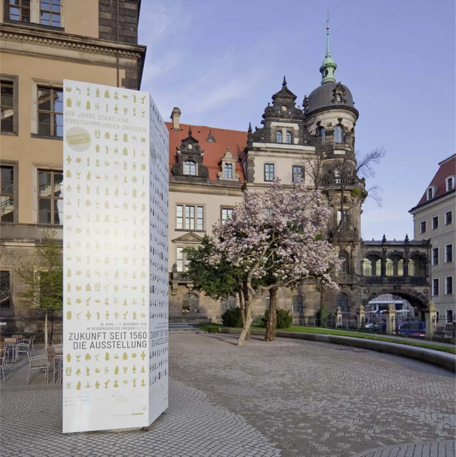 Für das Jubiläumsjahr der Staatlichen Kunstsammlungen Dresden 2010 hat das Designbüro Heine/Lenz/Zizka ein kommunikatives Leitbild entwickelt, das sich in zahlreichen Medien offline und online, in der großen Ausstellung und in begleitenden Aktivitäten wiederfindet. Die Gestaltungsidee möchte die Lust am Entdecken wecken, die Sammellust der Besucher anregen und so die einzigartige Dresdner Sammlung aus der guten alten Zeit in die Gegenwart führen. In der Umsetzung erfüllt das Visual die Ansprüche an Information, Wiedererkennbarkeit, Integration und Aktivierung ohne an Prägnanz zu verlieren.