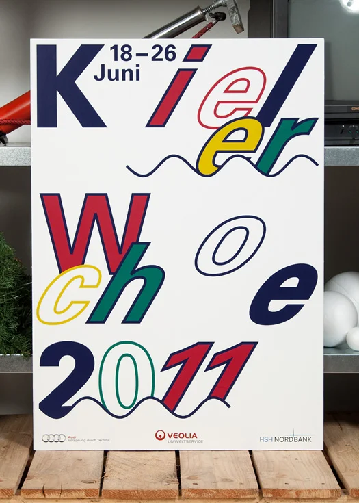 Die Kieler Woche ist das größte Segelereignis der Welt. Seit über 60 Jahren werden namhafte Gestalterinnen und Gestalter zum Wettbewerb für das jährliche Corporate Design eingeladen. Dieser Wettbewerb ist einer der bedeutendsten in Deutschland und alleine die Einladung ist eine Auszeichnung. Dieses Jahr bekamen wir die Ehre unsere Entwürfe einzureichen. Die Jury hat sich jedoch für einen anderen Gestalter entschieden.