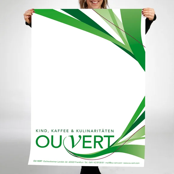 Das Café bietet neben Speisen und Getränken eine Kinderbetreuung mit Spielzimmer an. Das Design soll diese Offenheit (frz. ouvert) darstellen. Natürlich in der Farbe Grün (frz. vert).