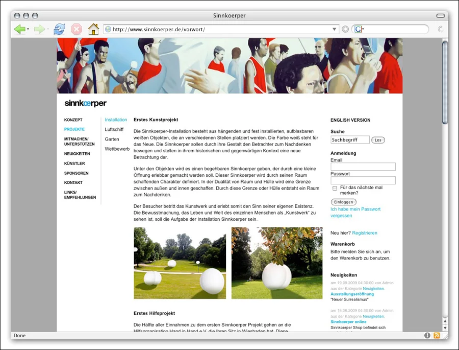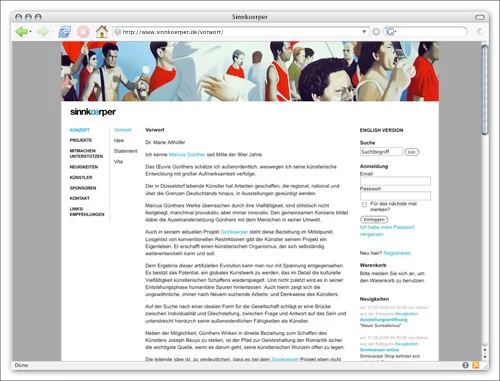 Der Sinnkoerper ist eine Hülle, bestehend aus zwei elliptischen Körpern. Diese Form ist eine Natürliche und erinnert an eine bevorstehende Mitose. Sie taucht in einem Kindheitstraum Marcus Günthers (dem Initiator des Projekts) das erste mal auf, kristallisierte sich aber erst 30 Jahre danach als Symbol des Sinnkoerpers heraus. Daraus folgte 2006 eine Bilderserie mit dem Titel „und morgen wird alles anders sein“, aus der die idee zum Sinnkoerper Projekt geboren wurde.