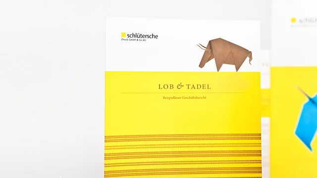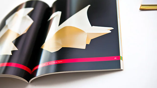 Für den immer schnelleren Rhythmus in der Katalogproduktion gibt es das Katalogsystem der Schlüterschen Druck. In unserem Perfektmuster »Fliegender Händlerkatalog« am Beispiel eines imaginären Papierfliegerversands dargestellt und mit mehrfarbiger Registerstanzung prachtvoll vollendet.