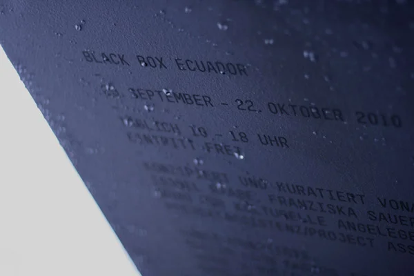 Für die Ausstellung Black Box Ecuador habe ich das gesamte Erscheinungsbild (Logo, Ausstellungskatalog, Plakat, Postkarte) sowie die Ausstellungsgrafik an sich gestaltet. Die Ausstellung lief vom 25. September bis zum 22. Oktober 2010 auf dem Berliner Schlossplatz, über 11 000 Menschen haben sie sich angesehen.