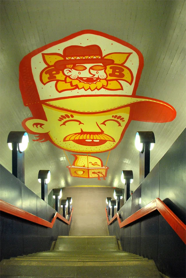 In connection with the Turmkunst-Festival we were invited to paint a huge wall above a long stairway in the Subwaystation Schloßstr. under the Bierpinsel in Berlin Steglitz. Other Artists participating at this session were Wurstbande, Sam Crew, Base23, B2302 and others. Big thanks to Just and Sascha!