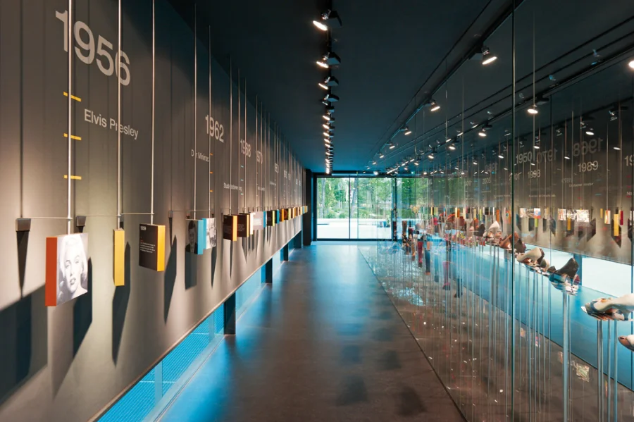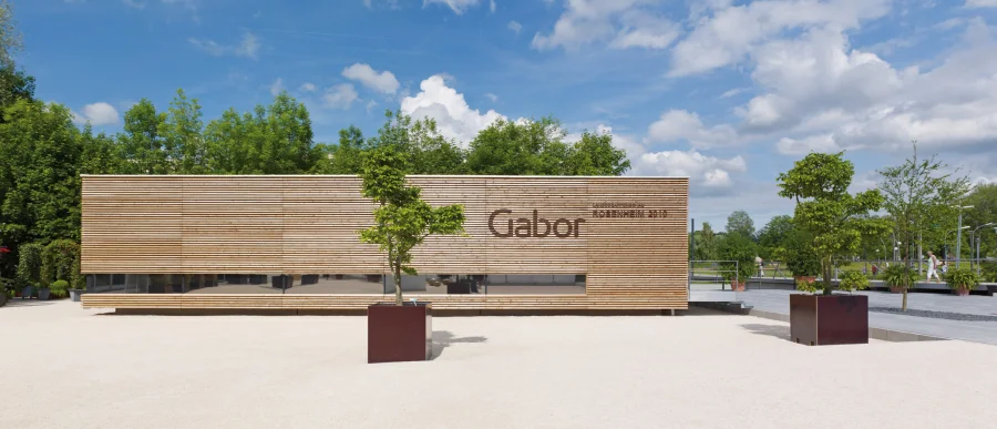 Für Gabor haben wir die Ausstellung „ZeitRäume“ auf der Landesgartenschau Rosenheim entworfen. Im eigenen Pavillon visualisiert hier der Schuhersteller seine Verbundenheit zu der Stadt am Inn. Seit 1966 hat Gabor seinen Sitz in Rosenheim. Das Ausstellungskonzept verknüpft Themen wie die Firmengeschichte, deren Produkte sowie Umwelt, Kultur und Weltgeschehen und macht deren wechselseitige Bezüge ersichtlich. Die Ausstellung nimmt ihre Gäste mit auf eine Reise durch Zeit, Form und Design: Wichtige Meilensteine der Firmengeschichte und parallel dazu verlaufende historische Ereignisse der Weltgeschichte werden in Beziehung gesetzt. Den modischen Kontext bildet eine 15 m lange wellenförmig gestaltete Schuhpräsentation mit über 200 Gabor-Originalen aller Jahrzehnte. Gabor eröffnete für die Ausstellung erstmalig sein Archiv und legte die Schuhschätze vertrauensvoll in unsere gestalterischen Hände von. Nach der Gartenschau zieht die Ausstellung auf das Firmengelände und heißt dort seine Besucher willkommen.
