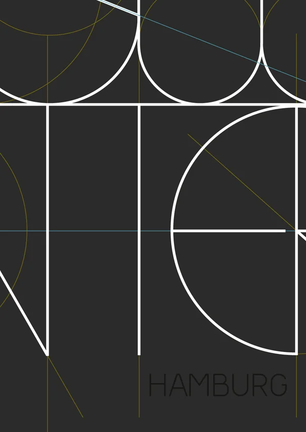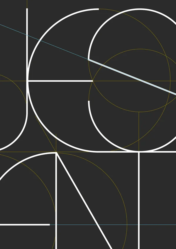 Entwicklung einer geometrisch aufgebauten Type mit bewusst sichtbaren Führungslinien.