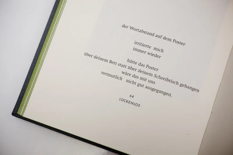 Diesen Inhalten folgen die typografischen Mittel aufmerksam. Sie geben der Sprache ein Gesicht, ohne ihr die Poren zu verstopfen. Die visuelle Wirkung der Texte lebt von der subtilen Inszenierung, die sehr gezielt mit dem “Gestalter-Auge” und typografischem Verständnis spielt.