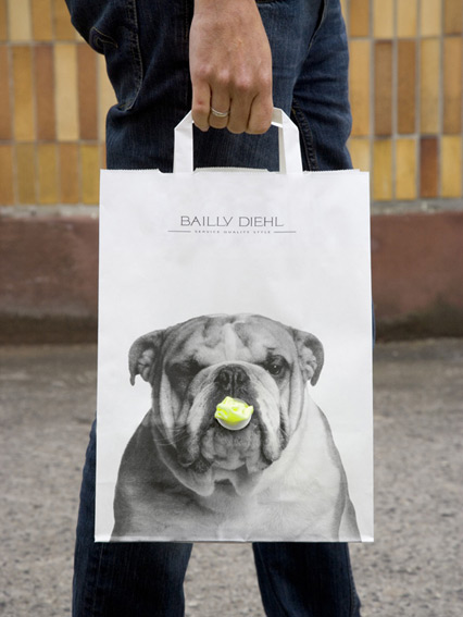 Die Boutiquenkette Bailly Diehl beauftragte Merkwürdig im März 2009 im Rahmen einer geplanten Sommeraktion mit der Gestaltung von Papiertaschen. Ein ungewöhnliches Motiv sollte günstige Papiertaschen zu einem "Hingucker" werden lassen.