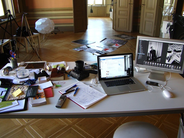 Ordnungsfanatiker oder kreativer Chaot? Beides! Während eines umfangreicheren Projektes kann es schon sehr chaotisch zugehen und kurz vor Fertigstellung bzw. Abgabe sieht es teilweise katastrophal aus, aber danach wird alles ordentlich aufgeräumt und weggeschmissen.