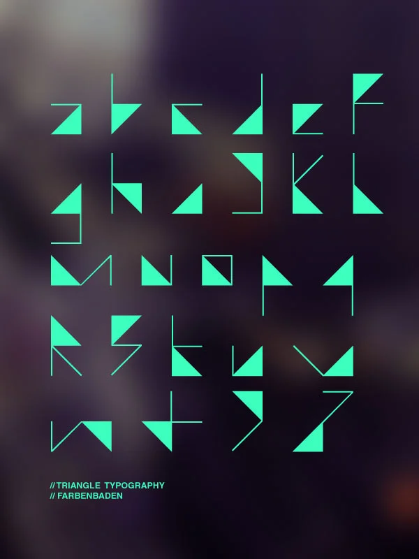 Jeder Buchstabe besteht aus einem Dreieck und 2 gleichlangen Strichen.