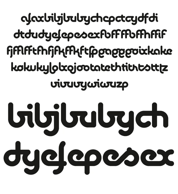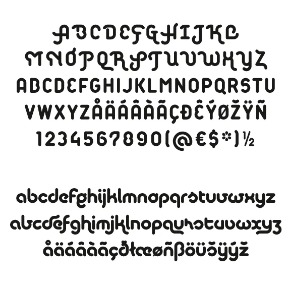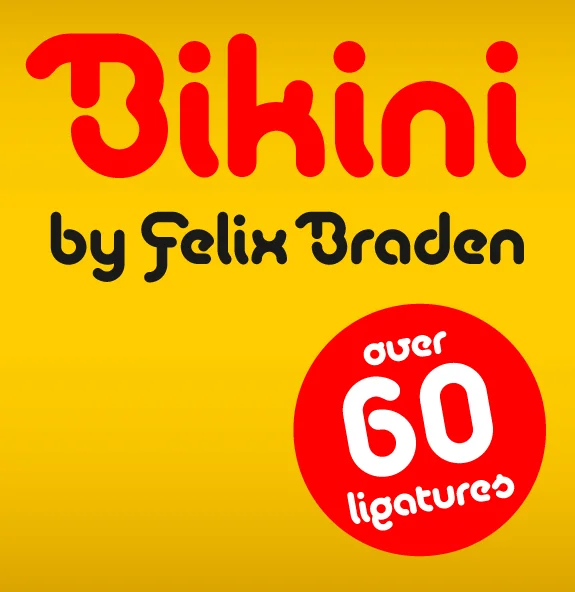 Bikini von Felix Braden ist ein Display-Font, der dem Gestalter viele Möglichkeiten für eine lebendige und anspruchsvolle Typografie bietet. Die Schrift enthält Swash-Capitals und Antiqua-Großbuchstaben für den Versalsatz sowie einen doppelten Satz Kleinbuchstaben zum variieren. Außerdem stehen über 60 Ligaturen zur Verfügung.
