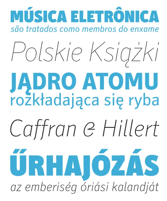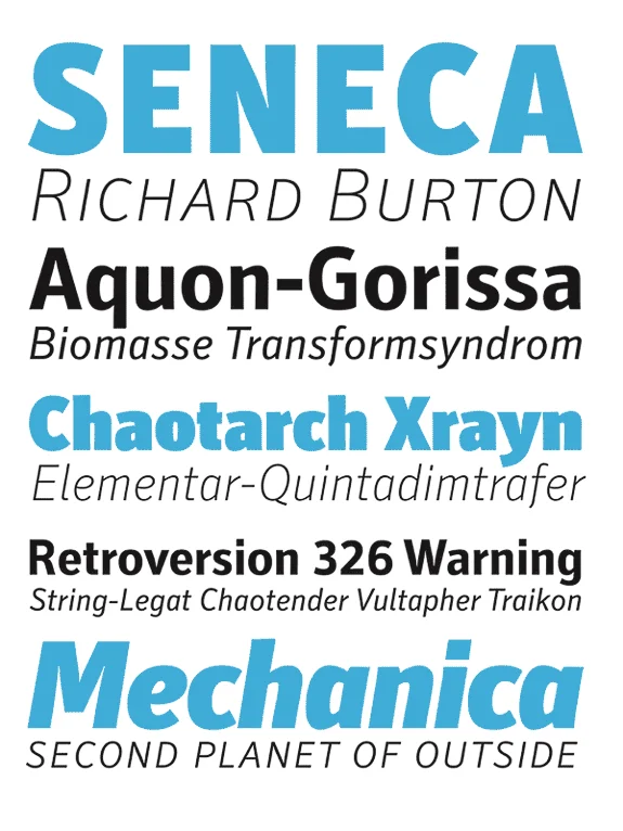 In den typischen Grundschriftgrößen von 8 bis 12 Punkt funktioniert sie in allen Abstufungen von Light (licht) bis Bold (fett) ausgezeichnet. Die weiteren Schnitte von Hairline (sehr zart) bis Ultra Black (sehr fett) bieten eine Vielzahl zusätzlicher Anwendungen sowohl für Schlagzeilen als auch für Infosysteme.