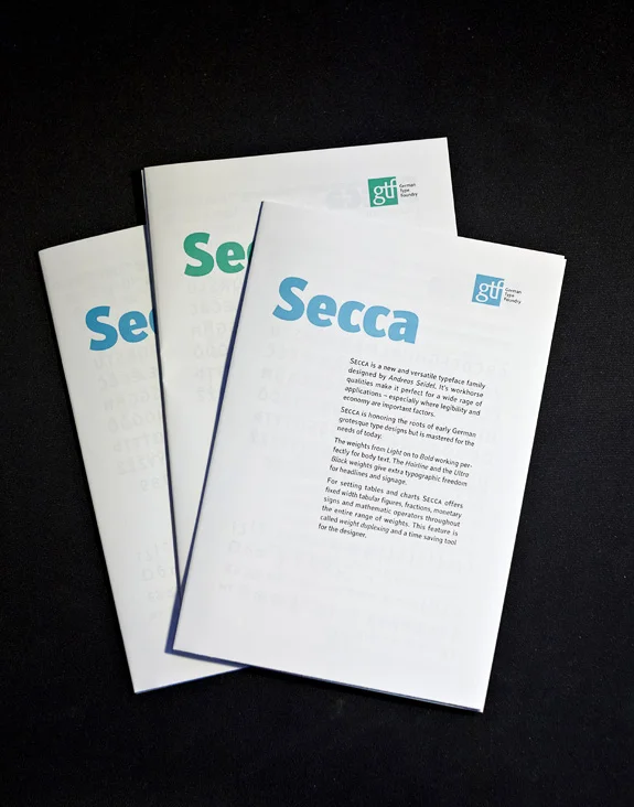 Secca ist eine neue und vielseitig einsetzbare Schrift des Schriftgestalters Andreas Seidel. Durch umfangreiche Variation der Strichstärken eignet sie sich für viele Einsatzgebiete – besonders wenn eine gute Lesbarkeit und eine ökonomische Laufweite wichtige Anwendungskriterien sind.