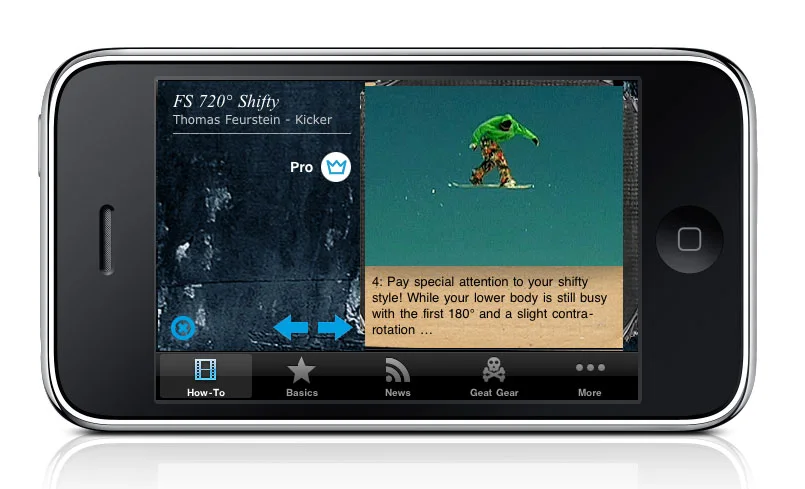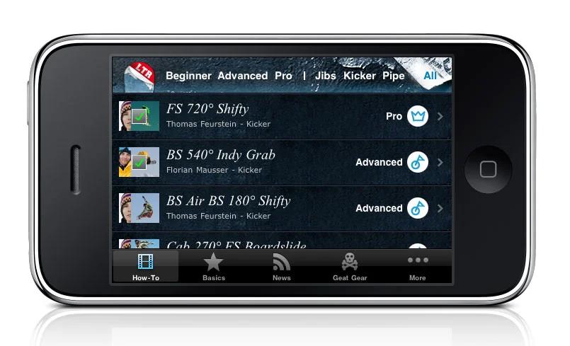 Trick Tips on the GO: LEARN TO RIDE Snowboard App ist exklusiv für iPhone und/oder iPod touch erhältlich. Konzipiert wurde diese App, um Anfängern und Fortgeschrittenen (Pros) mit Hilfe von Videos die Möglichkeit zu geben, ihr Können stetig zu verbessern. On Top geben Nitro-Pros noch Tipps, was beachtet werden muss, um schnell und sicher zum Erfolg zu kommen.