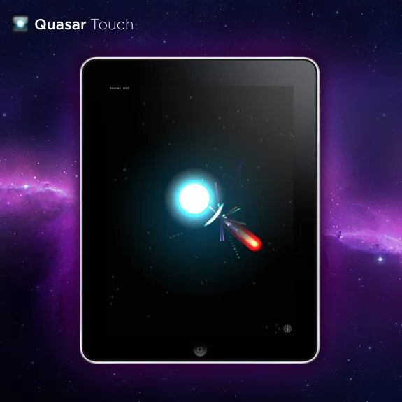 Quasar Touch ist ein Arcade-Spiel für das iPad. Du befindest dich in einer schwerelosen Welt, in der es deine einzige Aufgabe ist, eine Lichtquelle zu beschützen.
