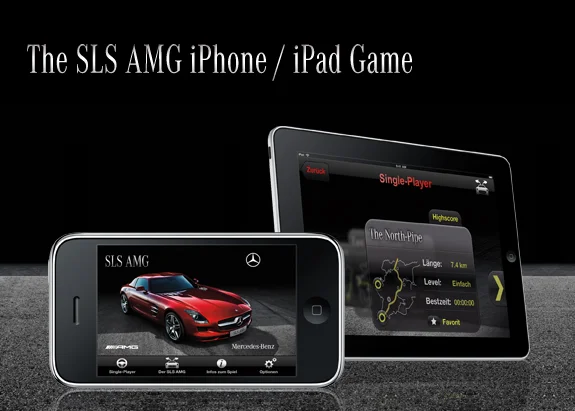 Mit dem neuen SLS AMG definiert Mercedes-Benz Geschwindigkeit, Fahrdynamik und Design eines Supersportwagens völlig neu. Wie Testimonial Michael Schuhmacher im TV-Spot können Sie mit dem Spiel „SLS AMG “ außergewöhnliche Fahrten durch verschiedene Tunnel erleben und den Wagen sogar an den Wänden oder kurzfristig auch an der Tunnel-Decke steuern. Es gilt, sich anhand der gefahrenen Zeit für den nächsten Tunnel zu qualifizieren während sich der Schwierigkeitsgrad kontinuierlich steigert. Darüber hinaus bieten ein Showroom, Sounds, eine Galerie, Informationen zu technischen Daten und Videos alles Wissenswerte rund um dieses außergewöhnliche Fahrzeug.