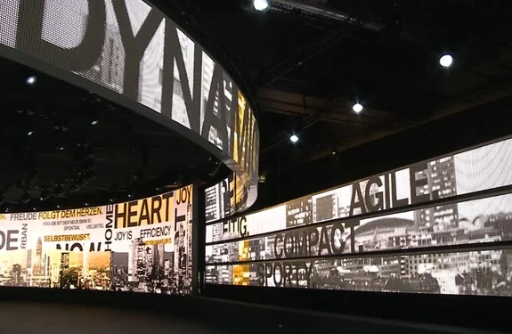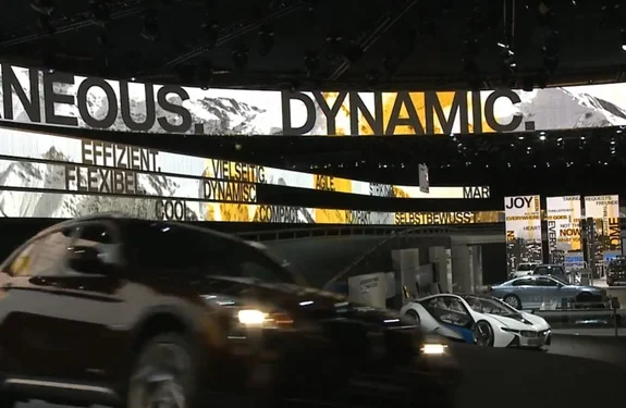 The new BMW X1 in action at the Frankfurt Motor Show 2009. Gate.11 GmbH designed and produced all the motion graphics for the 300 meters of screens that span the whole exhibition space.
