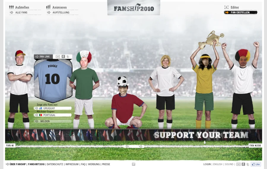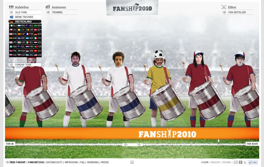 Fanship2010 ist ein internationales Onlineprojekt des Berliner Kreativnetzwerks infarbe zur diesjährigen Fußball Weltmeisterschaft.