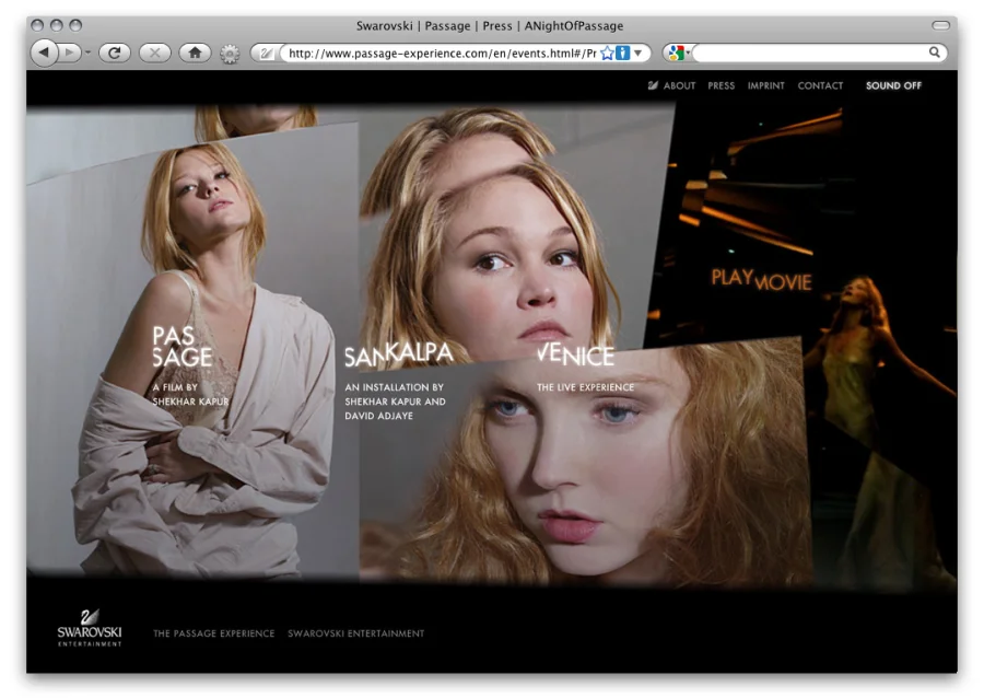 Die kristalline Bildsprache des Regisseurs Shekhar Kapur und des Architekten David Ajaye wird im Web durch animierte Übergänge und eine facettenhafte Anmutung weitergeführt.