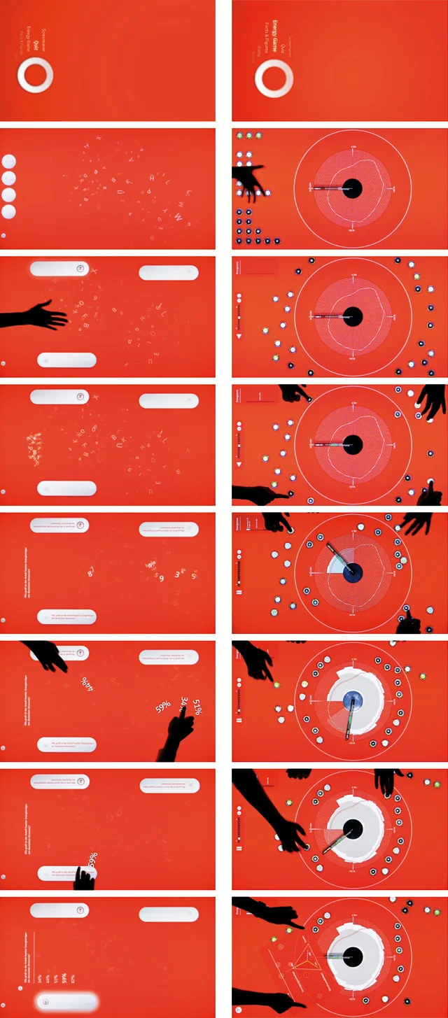 Konzeption, Gestaltung und Programmierung einer interaktiven Anwendung für einen Multitouch-Medientisch, der erstmals auf dem Messestand des Energieversorgers E.ON auf der Hannover Messe 2010 präsentiert wurde. In Kooperation mit Milla und Partner entwickelte Projekttriangle ein umfassendes Interaktionskonzept für die unterschiedlichen Multitouch-Spiele zum Thema Energieversorgung.